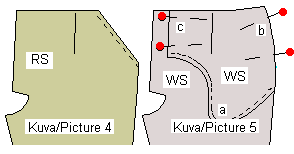 the fabric are outside the garment pieces.
